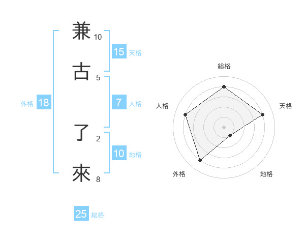 兼古 了來さんの総格は25画の4点!