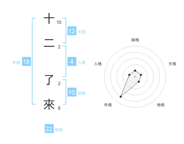 十二 了來さんの総格は22画の1点!