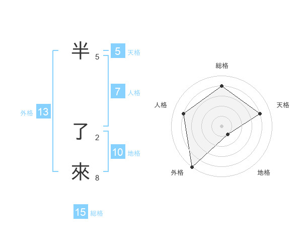 半 了來さんの外格は13画の5点!