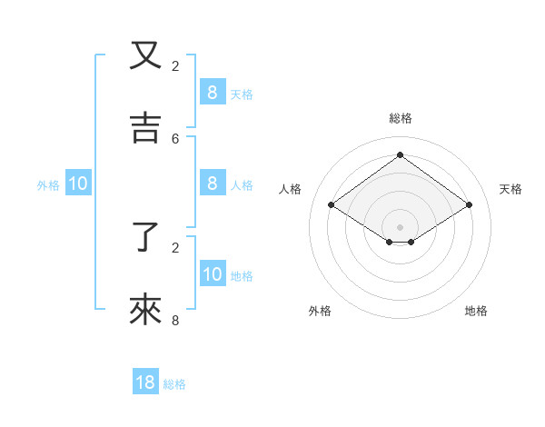 又吉 了來さんの天格は8画の4点!