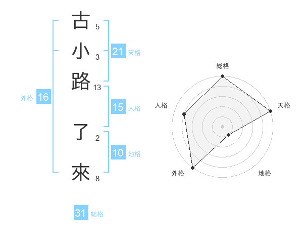 古小路 了來さんの天格は21画の5点!
