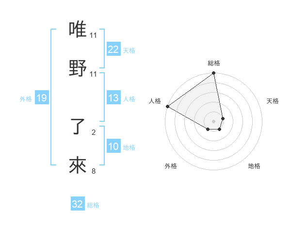 唯野 了來さんの天格は22画の1点!