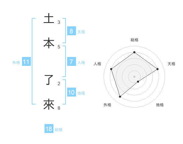 土本 了來さんの総格は18画の4点!