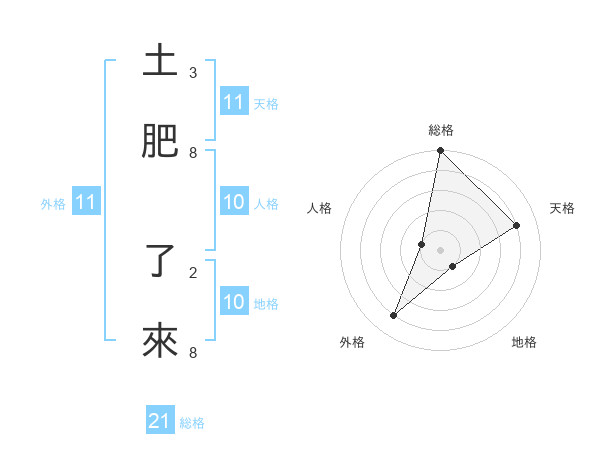 土肥 了來さんの総格は21画の5点!