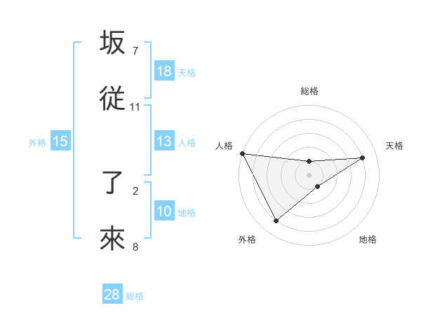 坂従 了來さんの総格は28画の1点!