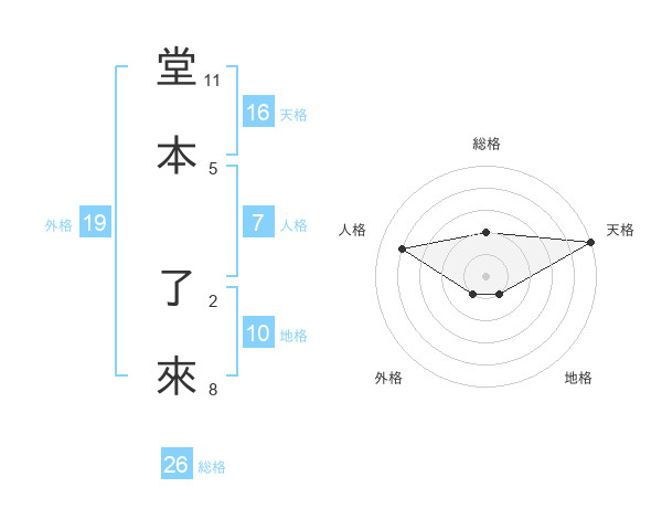 堂本 了來さんの総格は26画の2点!