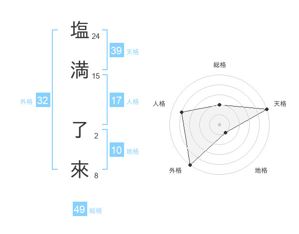 塩満 了來さんの天格は39画の5点!