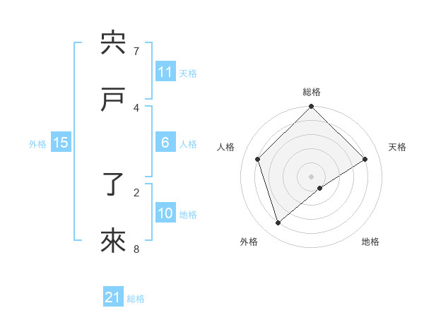 宍戸 了來さんを姓名の画数から五運を鑑定