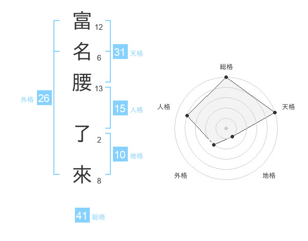 富名腰 了來さんの天格は31画の5点!