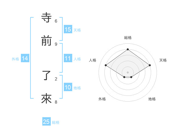 寺前 了來さんの総格は25画の4点!