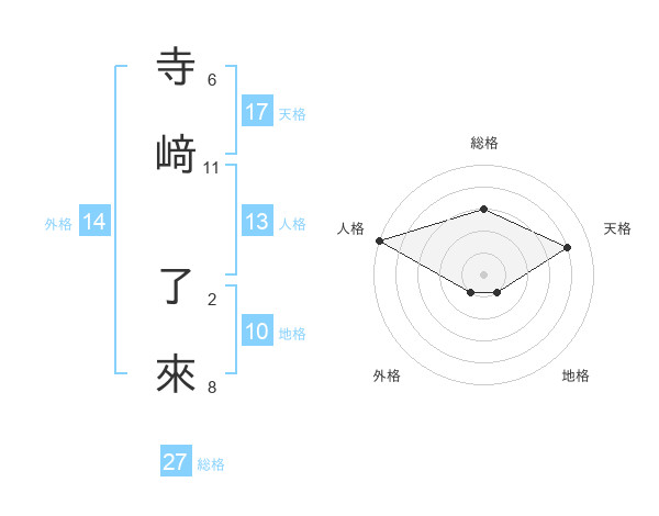 寺﨑 了來さんの天格は17画の4点!