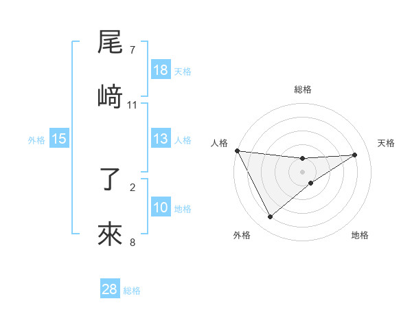 尾﨑 了來さんの天格は18画の4点!