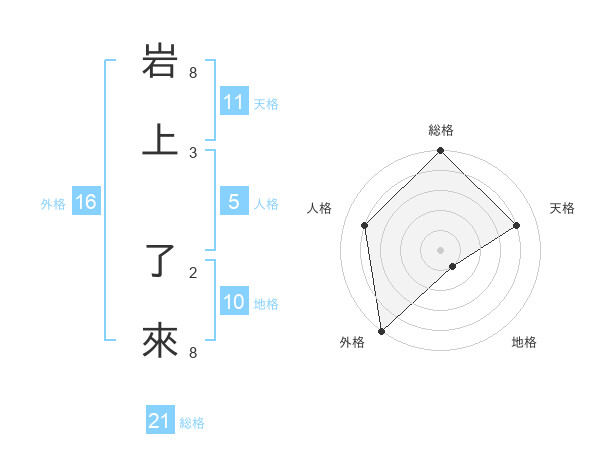 岩上 了來さんの総格は21画の5点!