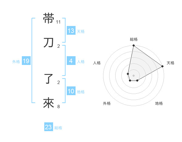 帯刀 了來さんの総格は23画の5点!