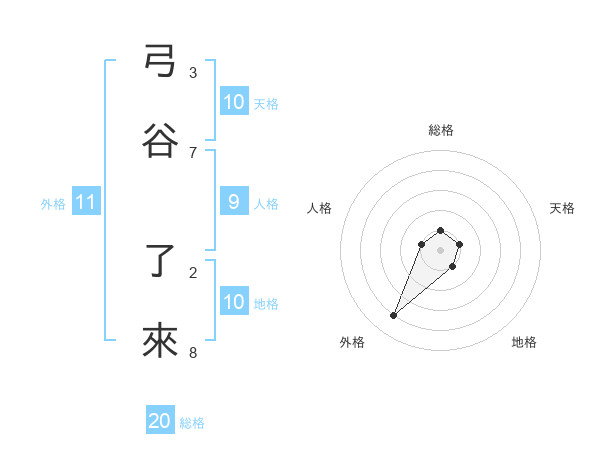 弓谷 了來さんの外格は11画の4点!