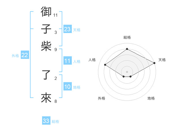 御子柴 了來さんを姓名の画数から五運を鑑定