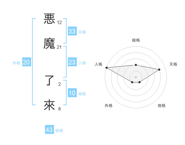悪魔 了來さんの総格は43画の2点!