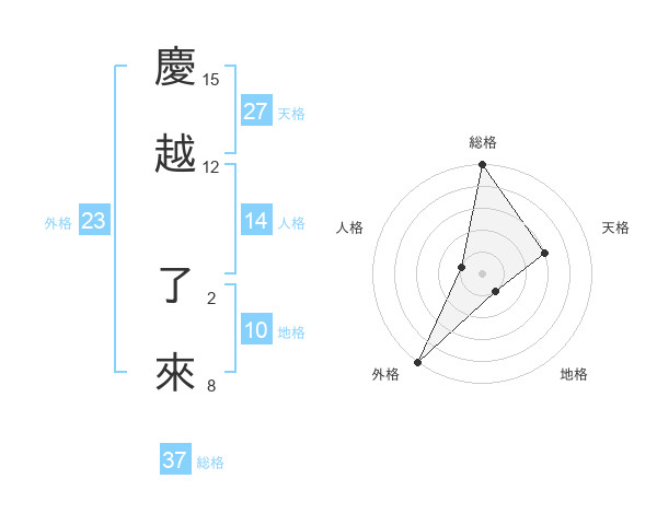 慶越 了來さんの総格は37画の5点!