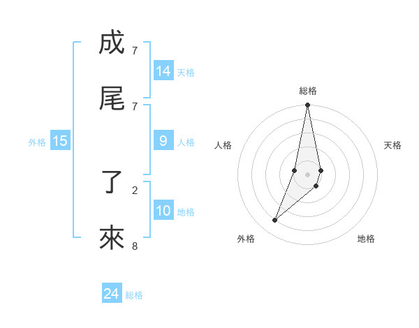 成尾 了來さんの外格は15画の4点!