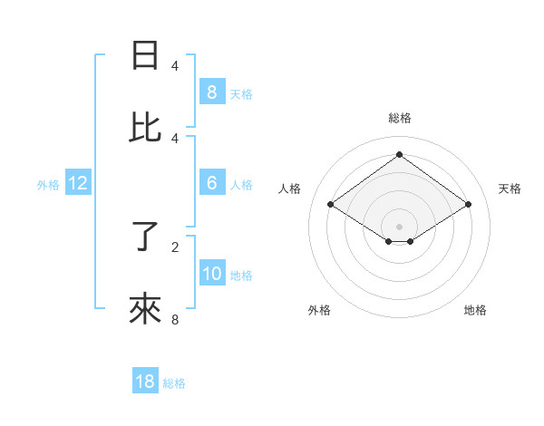 日比 了來さんの総格は18画の4点!