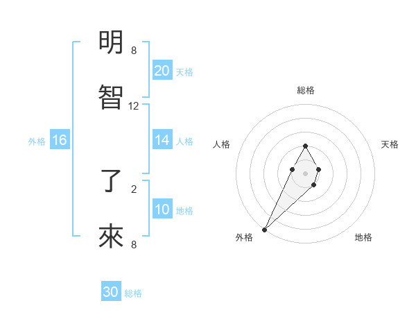 明智 了來さんの外格は16画の5点!