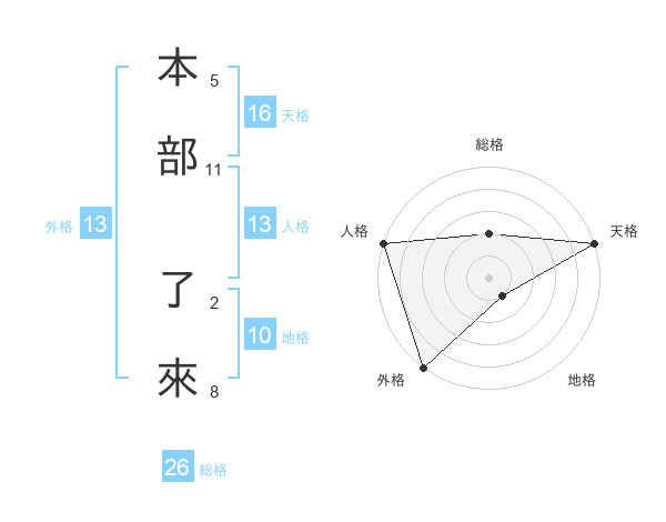 本部 了來さんの外格は13画の5点!