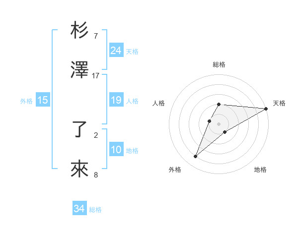 杉澤 了來さんを姓名の画数から五運を鑑定