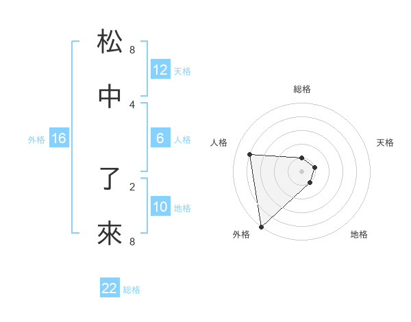 松中 了來さんの総格は22画の1点!