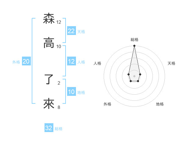 森高 了來さんの天格は22画の1点!