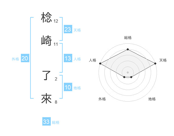 棯崎 了來さんを姓名の画数から五運を鑑定