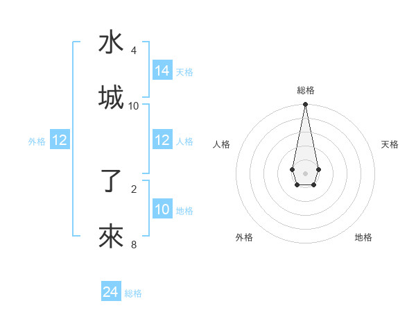 水城 了來さんの総格は24画の5点!