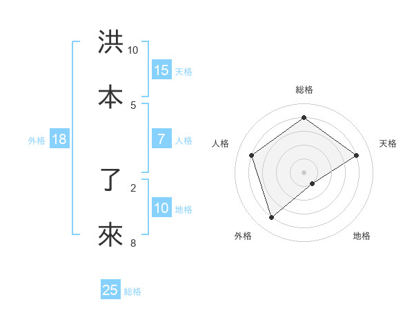 洪本 了來さんの総格は25画の4点!