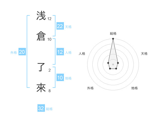 浅倉 了來さんの総格は32画の5点!