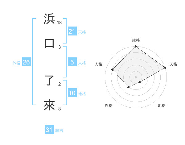 浜口 了來さんの総格は31画の5点!