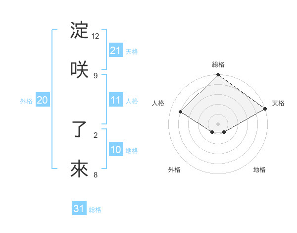 淀咲 了來さんの総格は31画の5点!