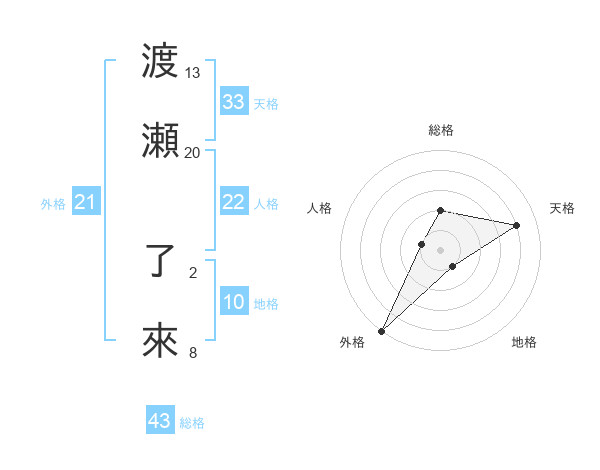 渡瀬 了來さんを姓名の画数から五運を鑑定