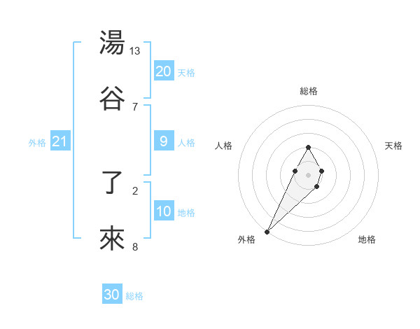 湯谷 了來さんの外格は21画の5点!