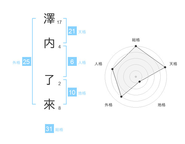 澤内 了來さんの総格は31画の5点!