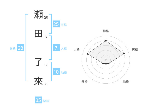 瀬田 了來さんの総格は35画の4点!