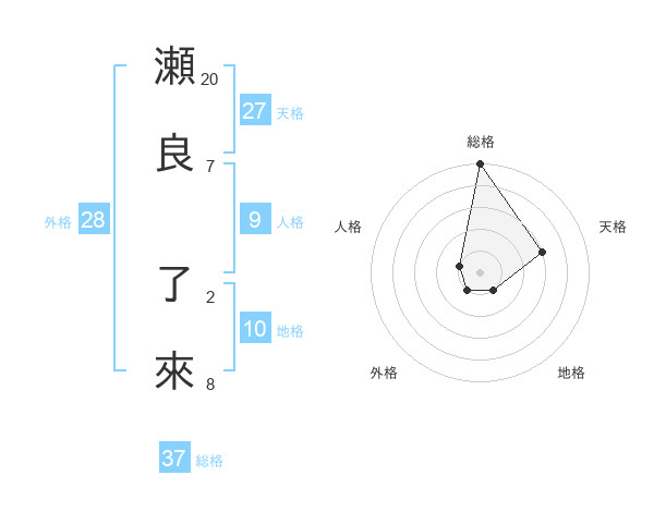 瀬良 了來さんの総格は37画の5点!