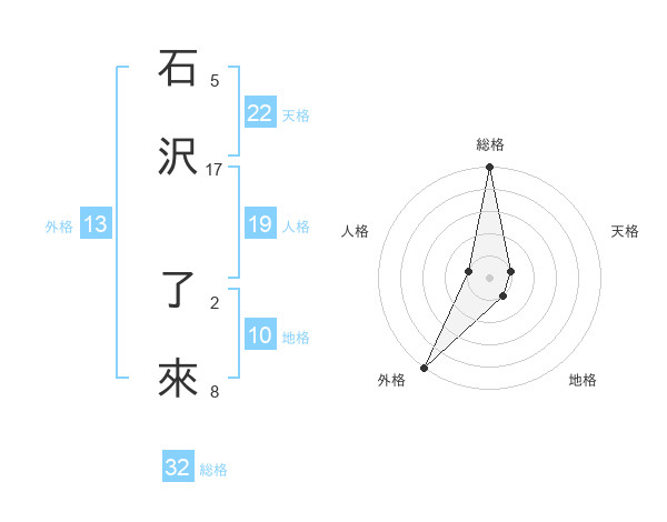 石沢 了來さんの総格は32画の5点!