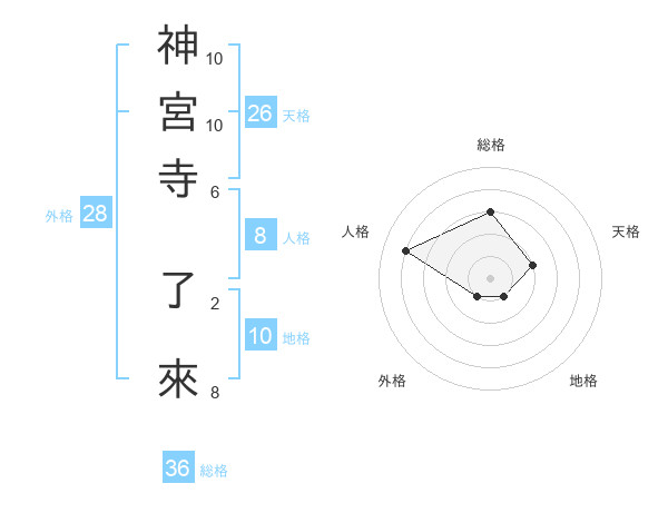 神宮寺 了來さんを姓名の画数から五運を鑑定