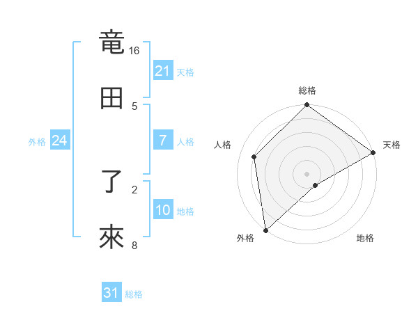 竜田 了來さんの総格は31画の5点!