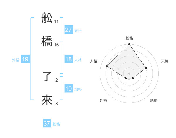 舩橋 了來さんの総格は37画の5点!