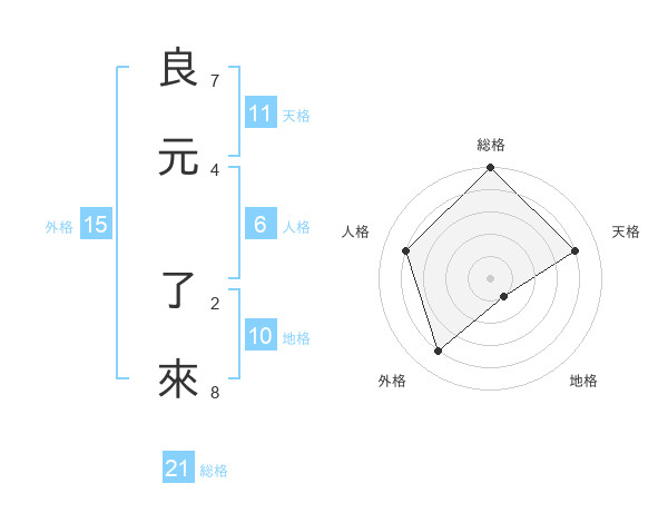 良元 了來さんの総格は21画の5点!
