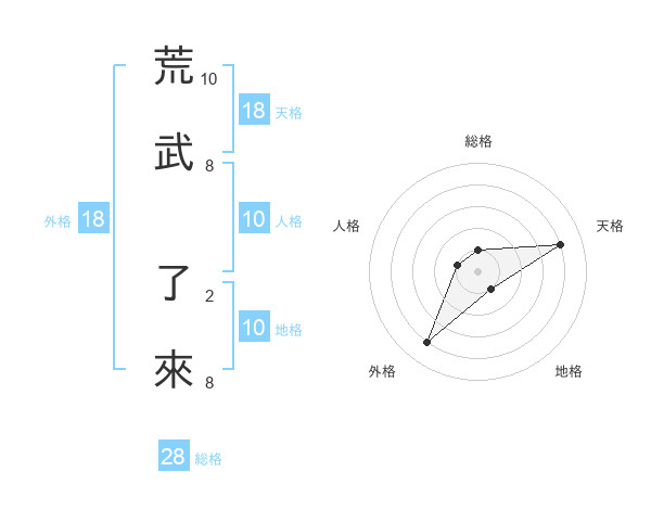 荒武 了來さんの総格は28画の1点!