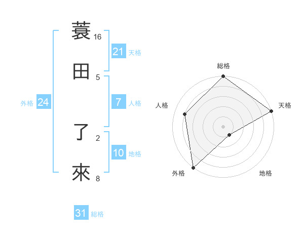蓑田 了來さんの天格は21画の5点!