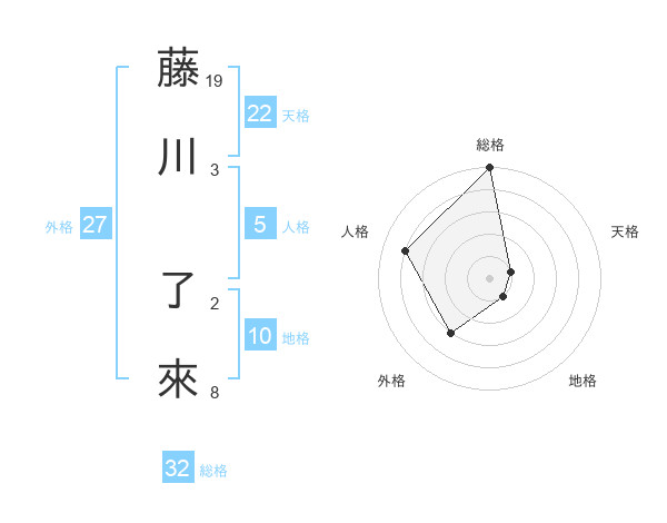 藤川 了來さんの総格は32画の5点!
