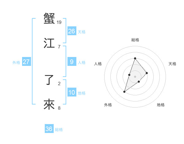 蟹江 了來さんの外格は27画の3点!