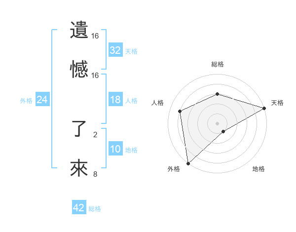 遺憾 了來さんの総格は42画の3点!